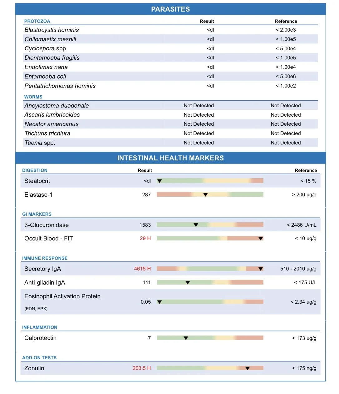 ⢠Inflammation and immune markers (calprotectin, sIgA)